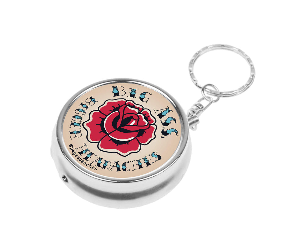 Pill Case, But Make It Queer & Cute – Page’s Peaches Keychain Pill Case Who says pill cases can’t have main-character energy? With Page’s Peaches, you’ve got the cutest little sidekick to keep your meds in check. Whether it’s ibuprofen, birth control, or your daily brain juice, this case is here to keep you covered and cute AF. Featuring a 3-way divider (for organization, duh) and a keychain so it’s always by your side, you’ll never have to hunt for your meds or your vibe again. Because the “girlies and gays” deserve better than a boring pill box. Pop off and medicate, bestie! Dimensions: 2" x 0.75" Features: 3-way divider to keep your essentials on point Keychain-ready, because pockets are a myth